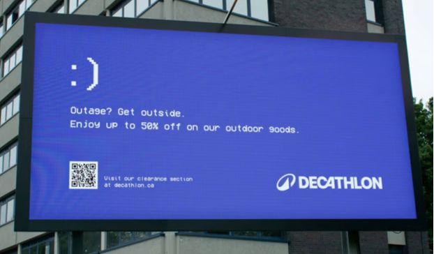 Within three hours, Decathlon Canada’s digital billboards and street-level DOOH screens in Montreal and Toronto were updated to mimic the dreaded blue screen of death.